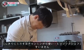 こちらのヘッドシェフ…一日目の終わりでチャンミンにこっそりお肉をあげていましたが、その後に始まった「チャンミン試食会」でみんながチャンミンにたくさんお食事あげていたのが悔しそうじゃありませんでしたか?